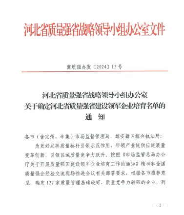 該資質(zhì)旨在更 好發(fā)揮質(zhì)量標(biāo)桿引 領(lǐng)示范作用,帶領(lǐng)產(chǎn)業(yè)鏈供應(yīng)鏈質(zhì)量變革創(chuàng)新,引 領(lǐng)區(qū)域質(zhì)量競(jìng)爭(zhēng)力躍升。入圍該名單標(biāo)志著公司質(zhì)量管理基礎(chǔ)較好,質(zhì)量競(jìng)爭(zhēng)力較強(qiáng),在開(kāi)展質(zhì)量分析、實(shí)施標(biāo)桿管理,不斷追求卓 越等方面優(yōu)先獲得資源支持,助力企業(yè)不斷提高質(zhì)量管理水平和質(zhì)量競(jìng)爭(zhēng)力。